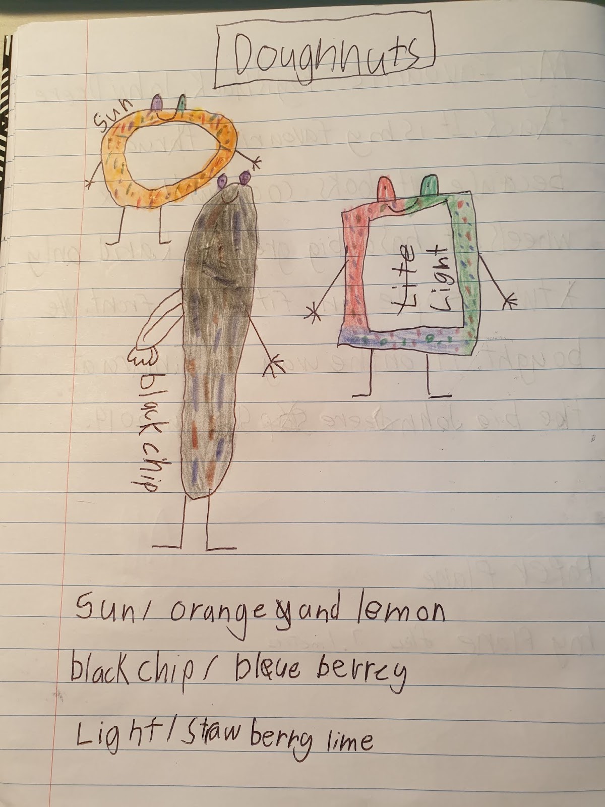 Finn's favourite toy writing and doughnut creations